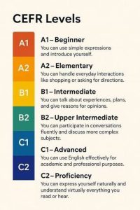ساختار ارزیابی مهارت زبان انگلیسی ما بر اساس چارچوب مرجع مشترک اروپایی زبانها (CEFR) طراحی شده است تا سطح زبان بهصورت بینالمللی قابل درک و مقایسه باشد.